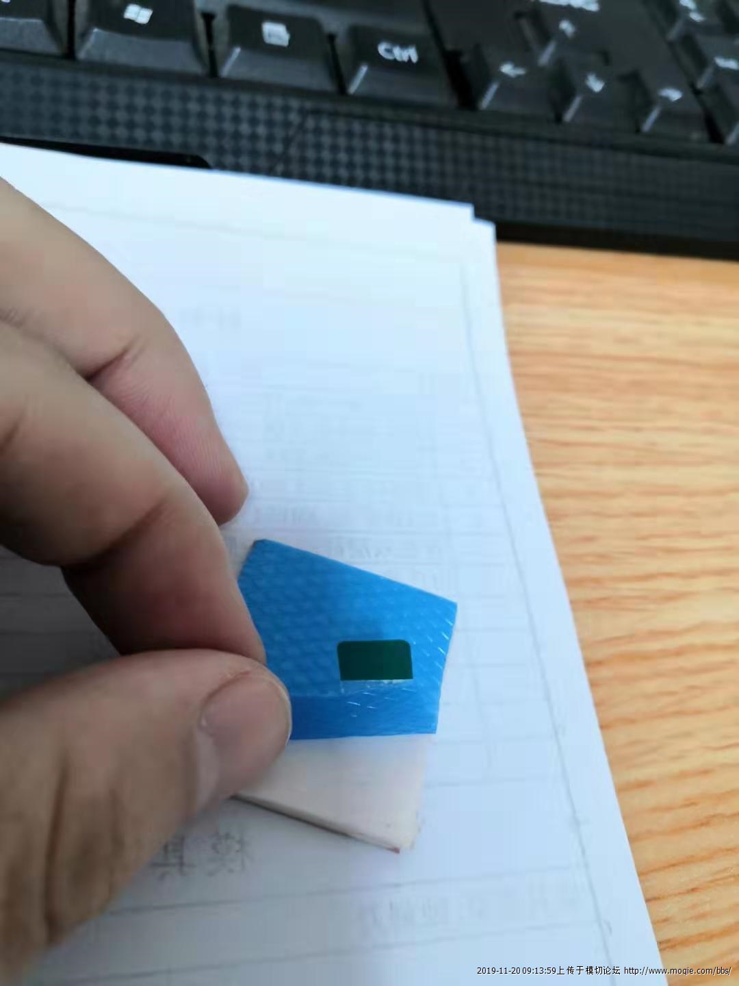 直接让成品那边做出来手柄就好了啊。导热硅胶软的 胶**按就变形了 你那种蓝色网格膜有**面用无基材是可以黏住的